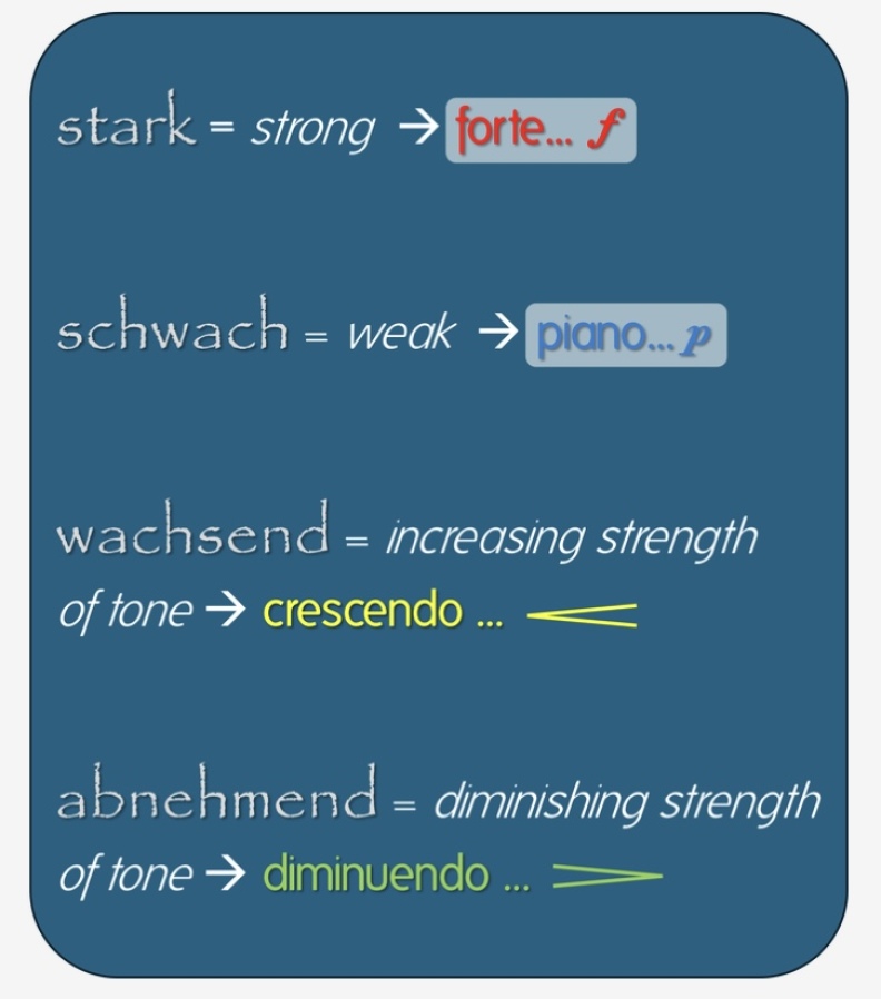 The word strong can be interpreted as forte, while weak will mean piano.